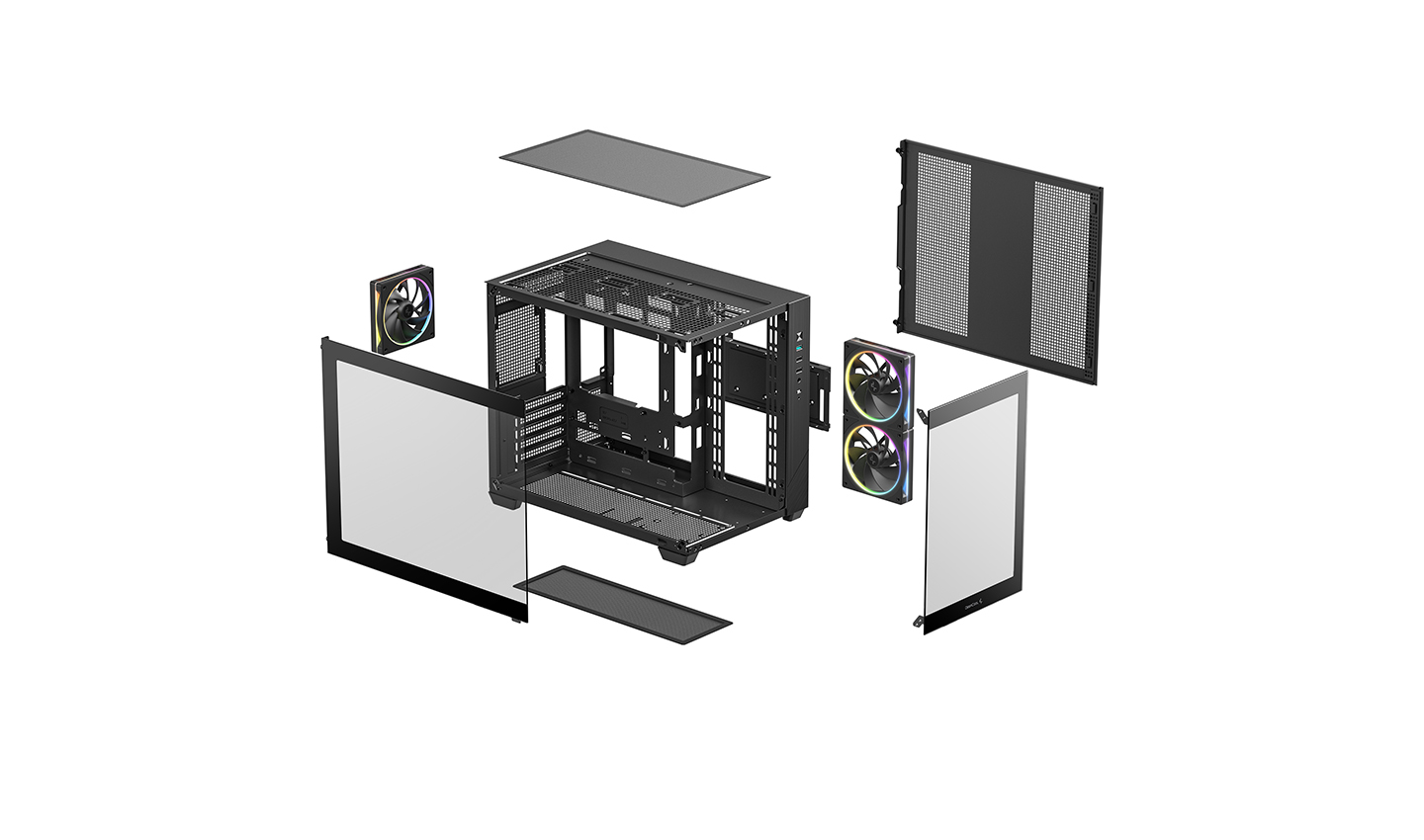 Am CG330 3F sind zwei seitliche Lüfter der FL-Serie mit umgekehrten Flügeln und ein Standardlüfter an der Rückseite vorinstalliert. Dadurch entsteht ein horizontaler Luftstromkanal für effektive Kühlung. Das einzigartige Beleuchtungsdesign von DeepCool sorgt für einen gleichmäßigen Leuchteffekt für Ihr System.